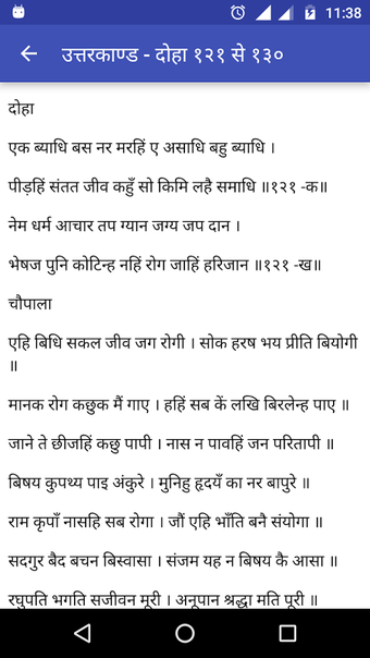 이 시에서 Goswami Tulsidas는 라마야나의 일곱 칸다를 히말라야 호수의 성수로 이어지는 일곱 계단에 비유했습니다. 칸다는 우아하게 구조화된 일련의 연으로, 각 연에는 라마야나의 사건을 설명하는 직유가 포함되어 있습니다.